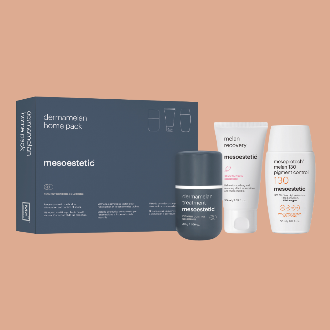 A grande inovação da mesoestetic® está na sua ação dupla: corrigir as manchas visíveis e regular a produção de melanina, prevenindo o reaparecimento. É o único laboratório no mundo com esta abordagem integral e patenteada, capaz de oferecer soluções médicas, estéticas e domiciliárias (dermamelan®, cosmelan® e melan tran3x, adaptadas a cada tipo de pele e necessidade.