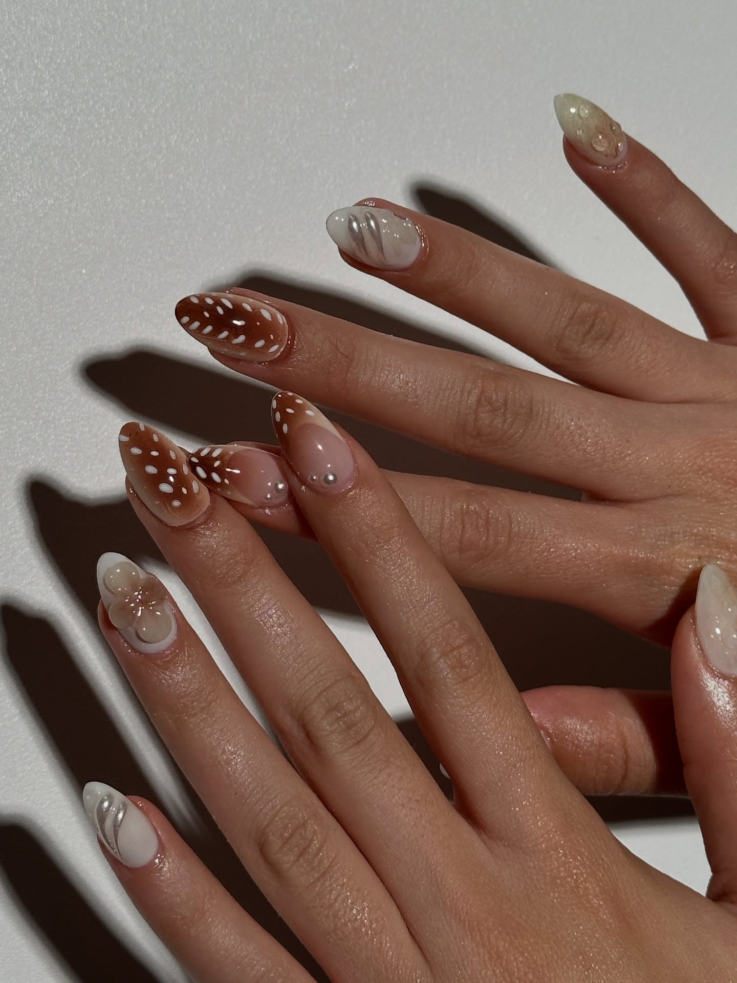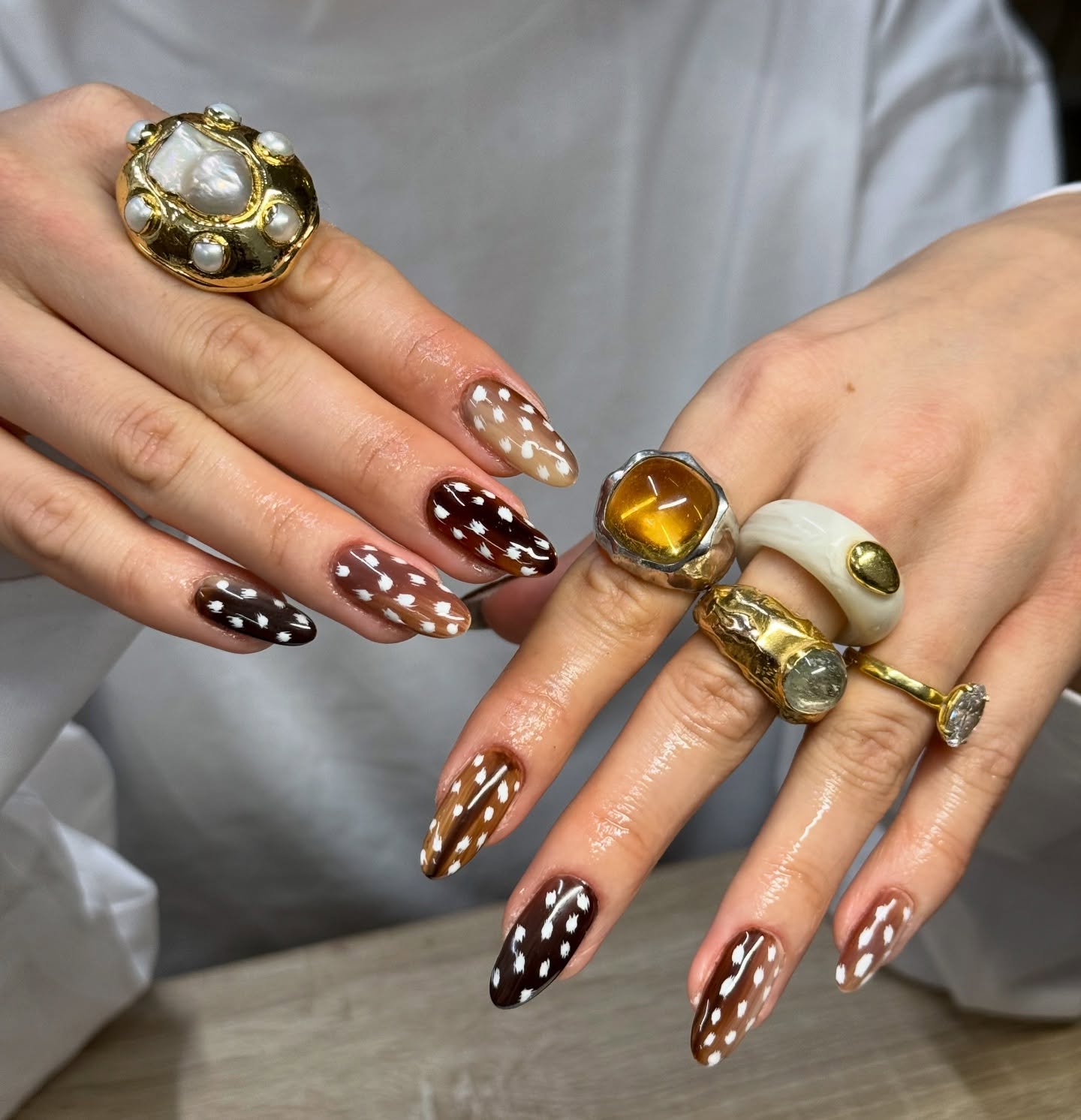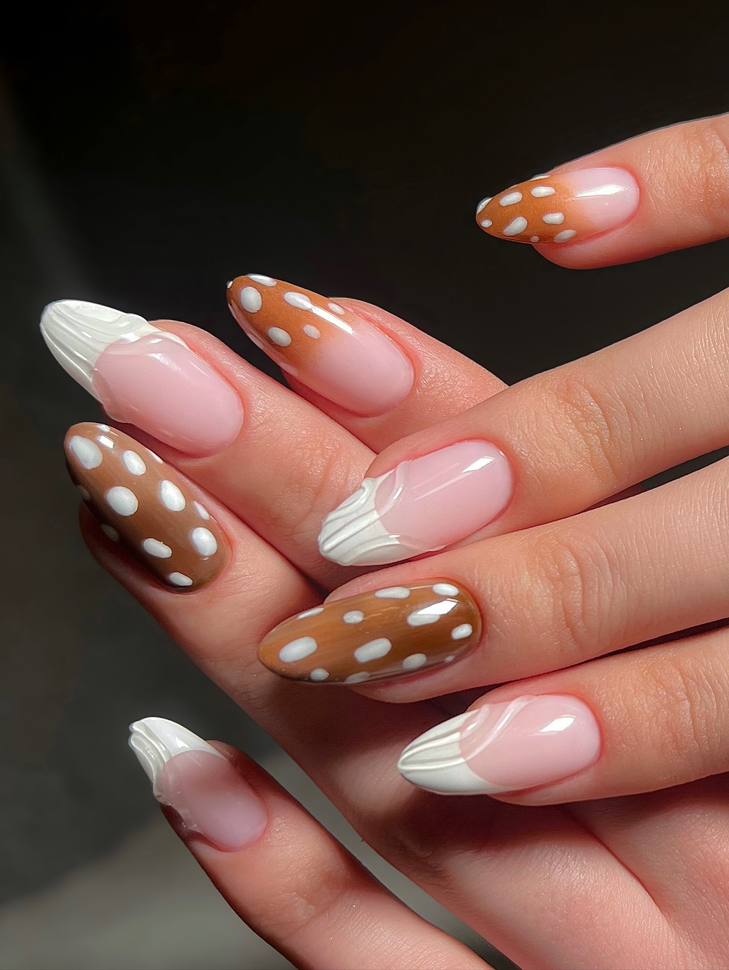 Dos casacos de pelo à nail art, este padrão tem vindo a ganhar destaque nesta temporada e cada vez mais fãs no que toca à manicura. Como o nome indica, as unhas de Bambi reproduzem o padrão do pelo dos veados, podendo ser usar sozinho - com tons que variam do branco e caramelo ao bege e cinzento - ou misturado com outros padrões e técnicas.